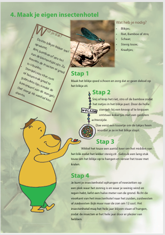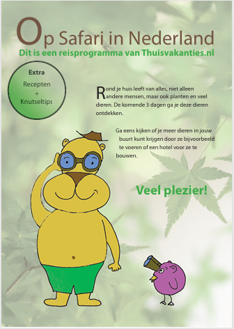 Dit complete activiteitenprogramma neemt kinderen mee op ontdekkingstocht door de natuur om hen heen. Van een zelfgebouwde uitkijkpost tot een eigen insectenhotel, van een spannende safaritocht door de buurt tot een spectaculaire Bonte Avond als feestelijke afsluiting.